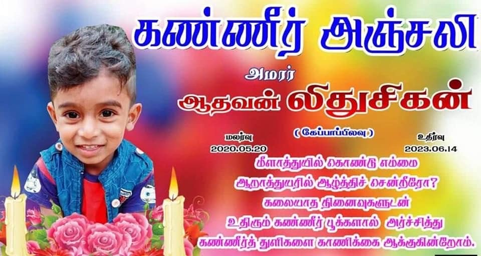 இந்த சிறுவனின் உயிரிழப்பு முல்லைத்தீவு கேப்பாபிலவு கிராமத்தில் பெரும்சோகத்தினை ஏற்படுத்தியுள்ளது.