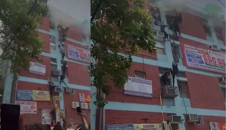 டெல்லி முகர்ஜி நகரில் உள்ள ஒரு பயிற்சி மையத்தில் இன்று மதியம் திடீரென தீ விபத்து ஏற்பட்டது. அந்த கட்டிடத்தின் மேல்தளத்தில் தீ விபத்து ஏற்பட்டதையடுத்து கரும்புகை எழுந்தது. பயிற்சி மையத்தில் படித்துக்கொண்டிருந்த மாணவர்கள் பீதி அடைந்தனர். படிக்கட்டு வழியாக வெளியேற முடியாத நிலை ஏற்பட்டது. இதையடுத்து மாடியில் இருந்து கயிறு மூலம் மாணவர்கள் ஒருவர் பின் ஒருவராக கீழே இறங்கினர். தீ விபத்து பற்றி தகவல் அறிந்த தீயணைப்பு படையினர், 11 வாகனங்களில் சென்று தீயை கட்டுப்படுத்தும் பணியில் ஈடுபட்டனர். மேலும், மாணவர்கள் கீழே இறங்குவதற்கு உதவி செய்தனர்.
