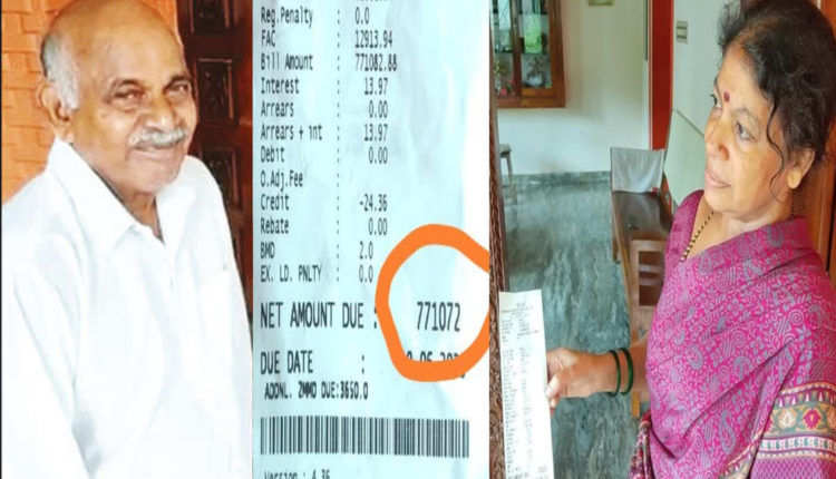 அதுவும் ரூ.200, ரூ.300 கட்டணம் வந்து கொண்டிருந்த வீட்டு மின் இணைப்பு உடையவர்களுக்கு இரு மடங்கு, முன்று மடங்கு கட்டணம் வந்துள்ளதாக ரசீது கொடுக்கப்பட்டு இருப்பது மக்கள் மத்தியில் அதிர்ச்சியை ஏற்படுத்தி வருகிறது. இந்த நிலையில், தட்சிணகன்னடா மாவட்டம் மங்களூரு அருகே உல்லாலை சேர்ந்தவர் சதாசிவ ஆச்சார்யா. இவரது வீட்டுக்கு மாதந்தோறும் சராசரியாக ரூ.3 ஆயிரம் மின்சார கட்டணமாக வந்துள்ளது. இந்த நிலையில் மே மாத மின்சார கட்டணமாக அவரது வீட்டுக்கு ரூ.7 லட்சத்து 71 ஆயிரத்து 72 வந்துள்ளதாக மின்அளவீடு செய்த மின்வாரிய ஊழியர் ரசீது கொடுத்துள்ளார். அந்த ரசீதில் 99 ஆயிரத்து 338 யூனிட் மின்சாரம் பயன்படுத்தி இருப்பதாகவும் குறிப்பிடப்பட்டிருந்தது.