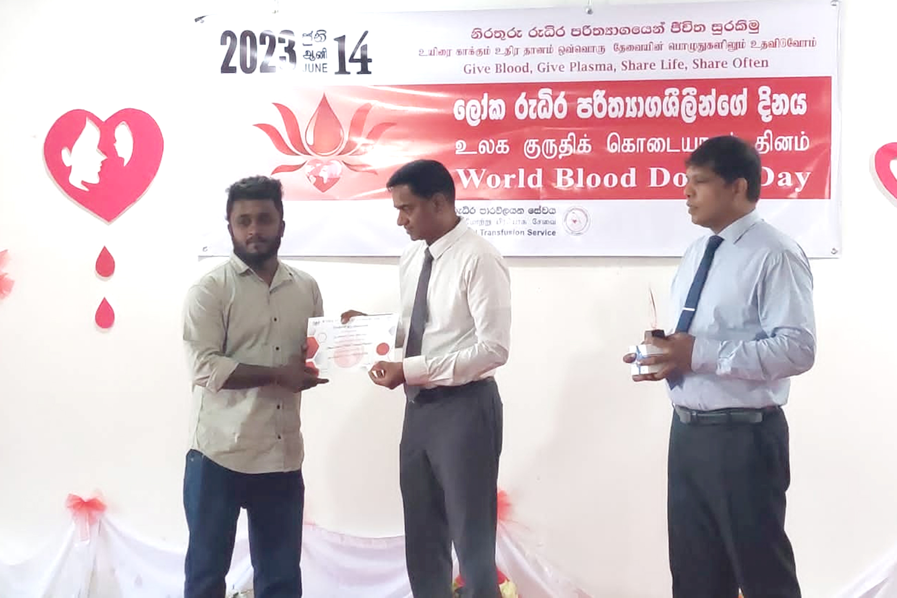 100 குருதிக் கொடையாளர்களுக்கும் 50 குருதி கொடை முகாமை ஒழுங்குபடுத்துபவர்களுக்கும் இதன்போது கௌரவமளிக்கப்பட்டது.
