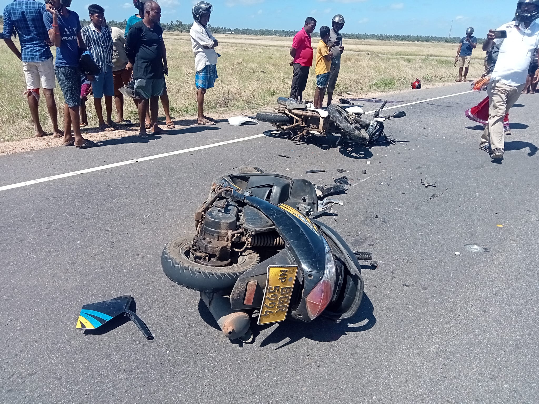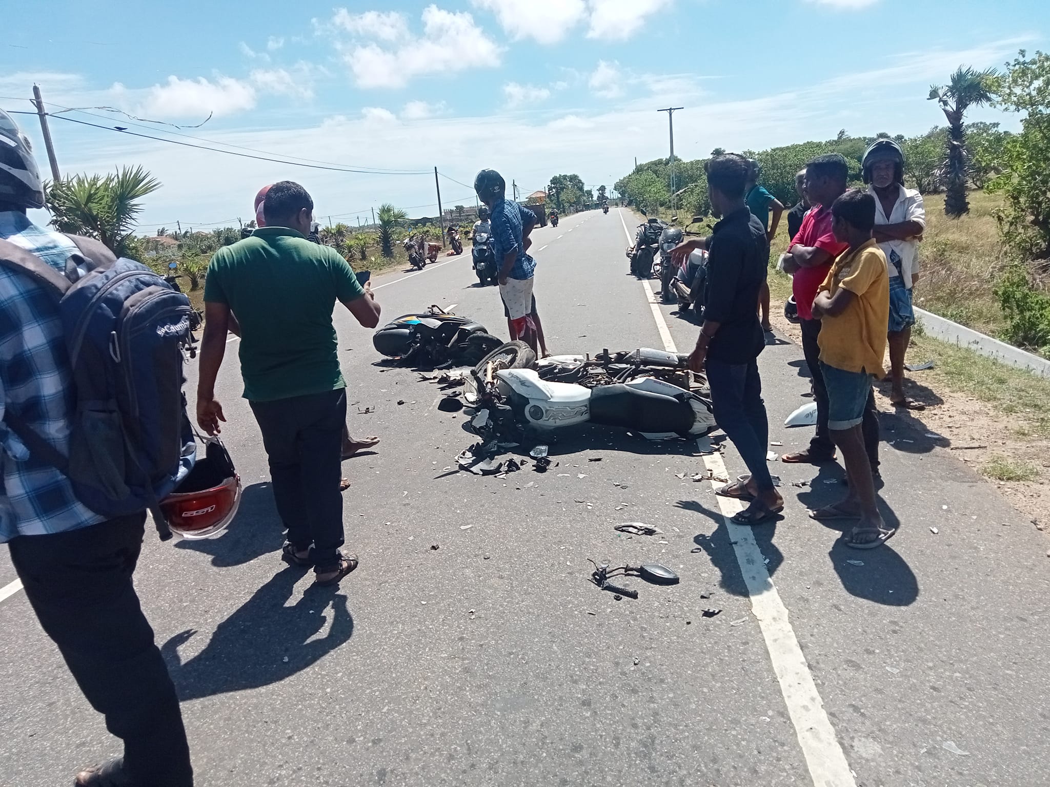 யாழ்ப்பாணம் – அராலி , வட்டுக்கோட்டை வீதியில் கல்லுண்டாய் வெளி பகுதியில் இன்றைய தினம் வியாழக்கிழமை மதியம் இரண்டு மோட்டார் சைக்கிள்கள் ஒன்றுடன் ஒன்று மோதி மோதி விபத்துக்கு உள்ளாகியுள்ளது.