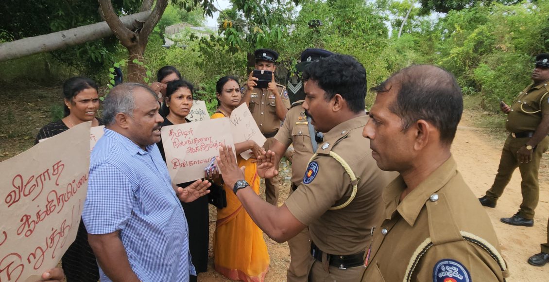 யாழ்ப்பாணம் – வலிகாமம் வடக்கில் தையிட்டிப் பிரதேசத்தில் தனியார் காணியை ஆக்கிரமித்து இராணுவத்தினரால் அமைக்கப்பட்டுள்ள சட்டவிரோத திஸ்ஸ விகாரைக் கட்டுமானத்தை அகற்றுமாறு கோரியும், அதனைச் சுற்றியுள்ள தனியார் காணிகளை உடனடியாக உரியவர்களிடம் ஒப்படைக்க வேண்டுமென வலியுறுத்தியும் தமிழ்த்தேசிய மக்கள் முன்னணியின் ஏற்பாட்டில் நேற்று ஞாயிற்றுக்கிழமை (02.07.2023) மாலை-03 மணியளவில் நான்காம் கட்டமாக ஆரம்பமான தொடர் கவனயீர்ப்புப் போராட்டம் இன்று திங்கட்கிழமை (03.07.2023) மாலை-05.45 மணியுடன் நிறைவடைந்துள்ளது. முழுநோன்மதி போயா தினத்தை முன்னிட்டு இன்றைய தினம் மேற்படி விகாரையில் … Continue reading தையிட்டி திஸ்ஸ விகாரைக்கு எதிரான நான்காம் கட்ட கவனயீர்ப்புப் போராட்டம் நிறைவு: பொலிஸார்- போராட்டக்காரர்கள் கடும் வாக்குவாதம்!! (PHOTOS, VIDEOS)