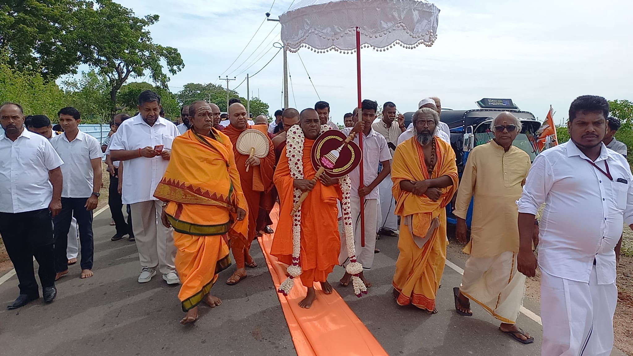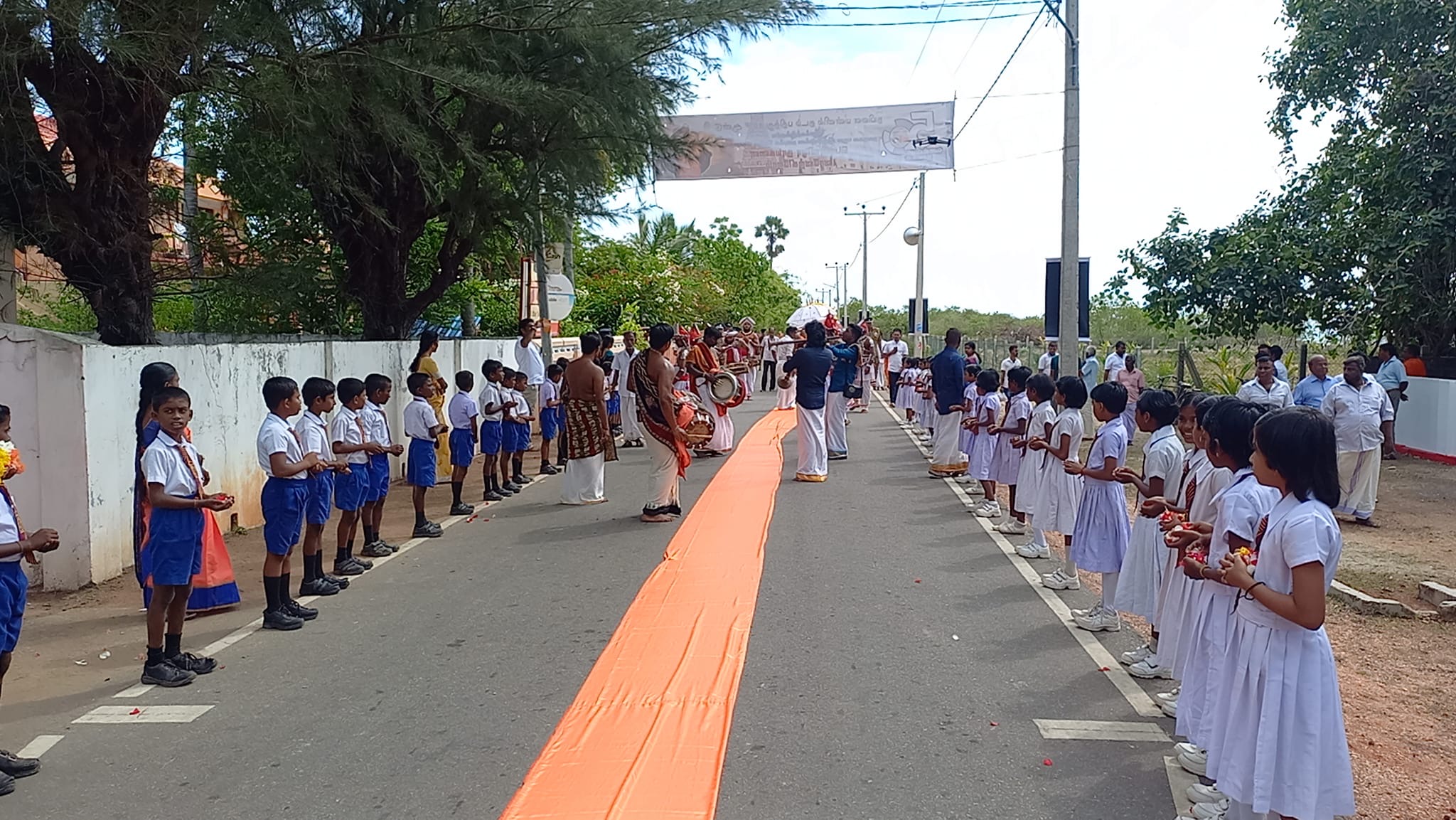 அதன் போது வீதியில் இரு மருங்கிலும் மாணவர்கள் , பொதுமக்கள் என பலரும் கூடி, விகாரதிபதிக்கு மலர் தூபி மரியாதை செலுத்தினர்.