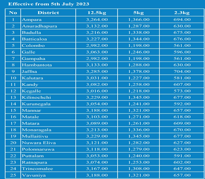 குறித்த விலைகுறைப்பின் பின்னரான மாவட்ட ரீதியிலான விலைப்பட்டியலை லிட்ரோ வெளியிட்டுள்ளது.