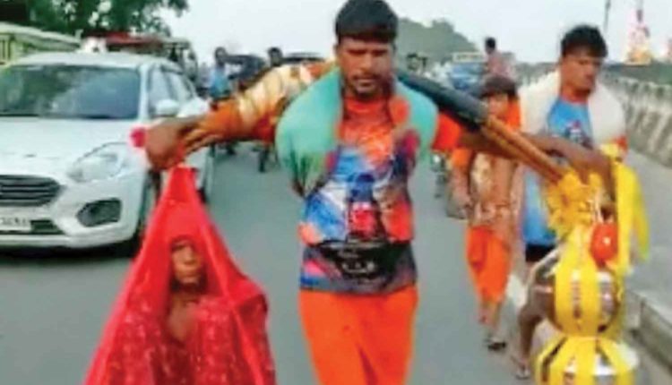 கன்வார் யாத்திரையின் போது தாயை தோளில் சுமந்து சென்ற வாலிபர்!!
