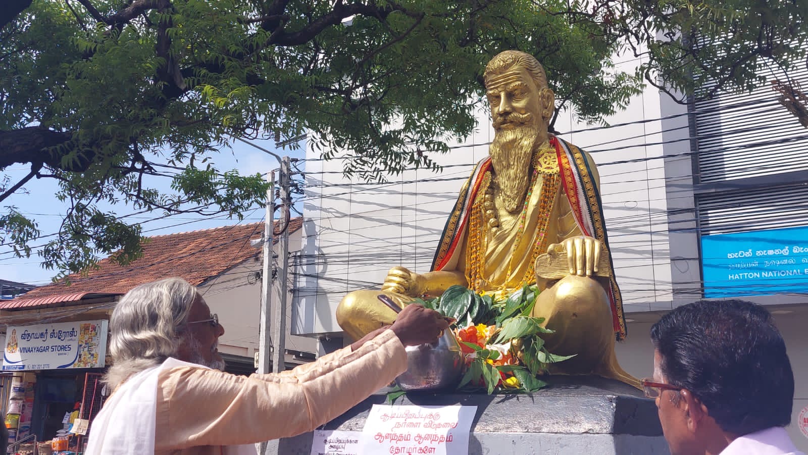 இதன்போது நாவாலியூர் சோமசுந்தரப் புலவரின் சிலைக்கு மாலை மற்றும் சால்வை அணிவித்து பூக்கள் தூவப்பட்டது.