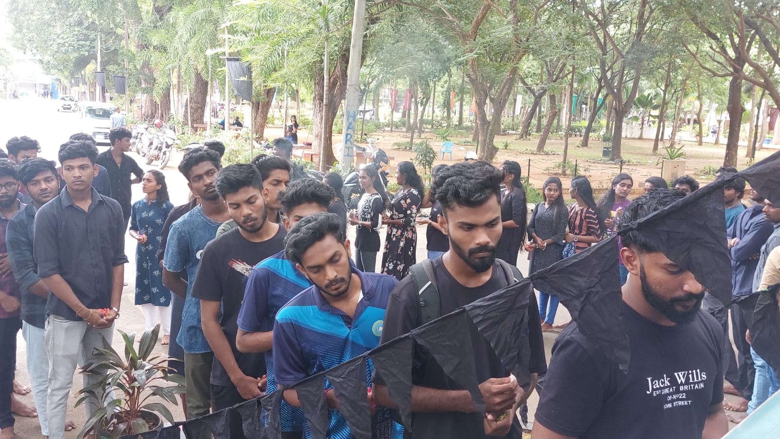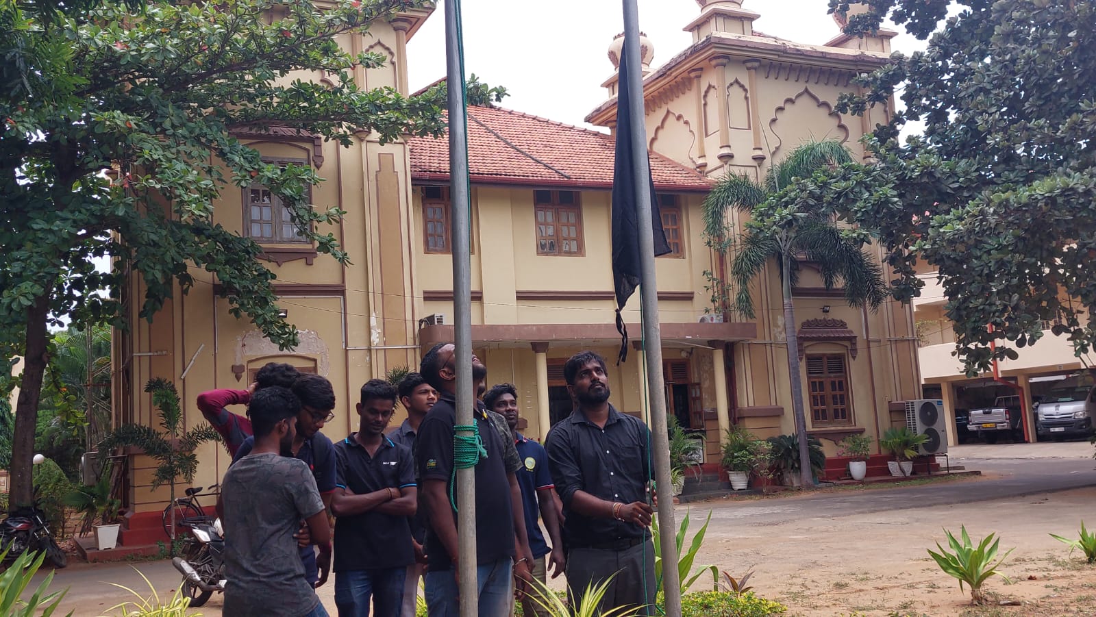 இதன் பொழுது பல்கலைக்கழகத்தின் பிரதான நுழைவாயிலின் அருகே அமைந்துள்ள யாழ் பல்கலைக்கழகத்தின் பிரதான கொடிக்கம்பத்தில் மாணவர்களால் கறுப்பு கொடியேற்றப்பட்டு அரைக்கம்பத்தில் பறக்கவிடப்பட்டது.