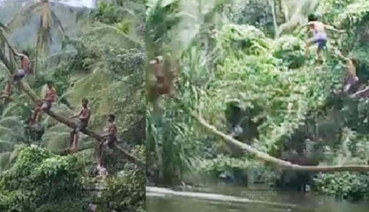 அப்போது அவர்கள், அங்கு ஆற்றுக்கு மேலே வளைந்தபடி வளர்ந்திருந்த தென்னை மரத்தின் மீது ஏறி நின்று, அங்கிந்து ஆற்றுக்குள் குதிப்பது போன் வீடியோ எடுத்து சமூகவலைதளங்களில் பதிவிட திட்டமிட்டனர். அதன்படி 4 வாலிபர்கள், மரத்தின் மேல் ஏறி அமர, கரையில் இருந்து சிலர் செல்போனில் வீடியோ எடுத்தனர். அப்போது வாலிபர்கள் அமர்ந்திருந்த மரம் திடீரென முறிந்து விழுந்தது. இதனால் மரத்தின் மேல் அமர்ந்திருந்த வாலிபர்கள் ஆற்றுக்குள் விழுந்தனர். ஆற்றில் முழுவதுமாக தண்ணீர் இருந்ததால், அதிர்ஷ்டவசமாக அவர்கள் யாருக்கும் காயம் ஏற்படவில்லை. மரம் முறிந்து வாலிபர்கள் ஆற்றுக்குள் விழும் வீடியோ சமூக வலைதளங்களில் பரவி வருவது குறிப்பிடத்தக்கது.