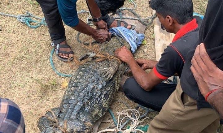 யாழ்ப்பாணம் வல்வெட்டித்துறை பகுதியில் நேற்றையதினம் 5 முதலைகள் பிடிக்கப்பட்டு வனஜீவராசிகள் திணைக்களத்திடம் ஒப்படைக்கப்பட்டன.