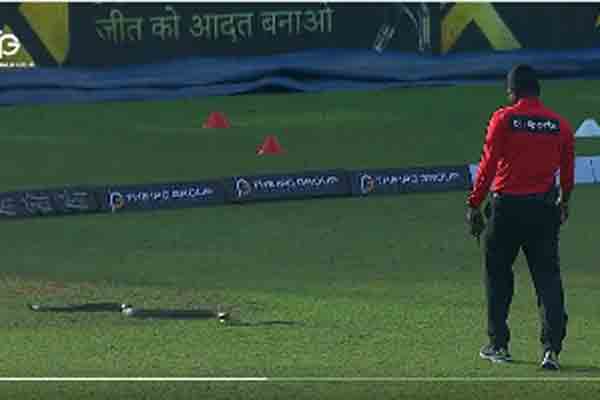 அதனை பார்த்த வீரர் ஒருவர், பாம்பு என்பதை சைகையால் காண்பித்தார். ஏனைய சில வீரர்களும் பார்த்தனர். இறுதியில் நடுவர்களில் ஒருவர், எல்லைக்கோட்டை தாண்டி விரட்டிவிட்டார்.