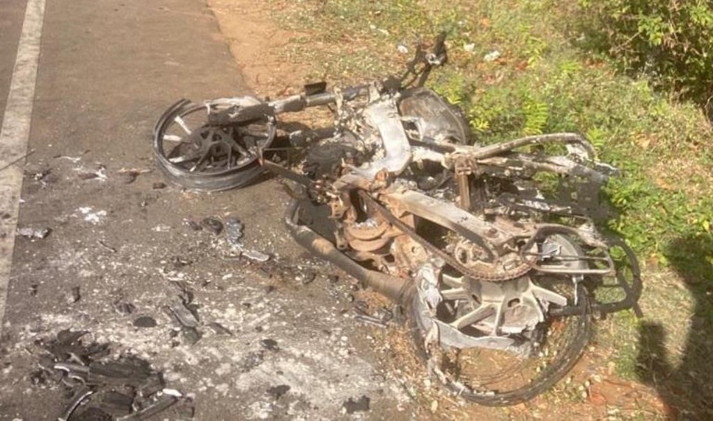 உரும்பிராய் பகுதியில் நேற்றைய தினம் வியாழக்கிழமை இரவு வீதியோரமாக நிறுத்தி வைக்கப்பட்டு இருந்த மோட்டார் சைக்கிளை இனம் தெரியாத நபர்கள் தீக்கிரையாக்கி விட்டு தப்பி சென்றுள்ளனர்.