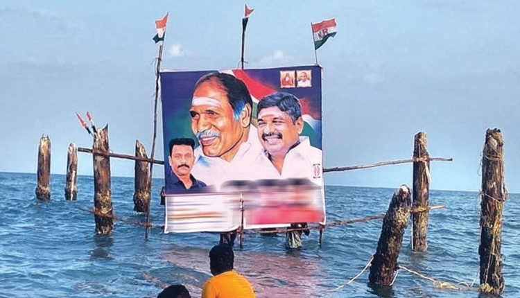 இன்று பிறந்தநாள்: நடுக்கடலில் ரங்கசாமிக்கு வாழ்த்து பேனர்- தொண்டர்கள் பிரமாண்டம்!!