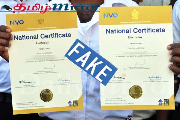 போலி NVQ சான்றிதழ் வழங்கிய நிறுவனங்களுக்கு பூட்டு !!
