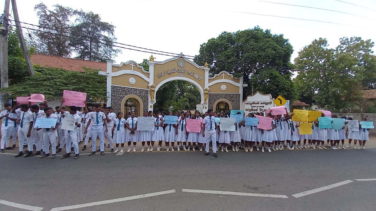 யாழ்ப்பாணம் தெல்லிப்பழை யூனியன் கல்லூரி முன்பாக இன்று வெள்ளிக்கிழமை(11) மதியம் பாடசாலை மாணவர்கள் ஆர்ப்பாட்டத்தில் ஈடுபட்டனர்.