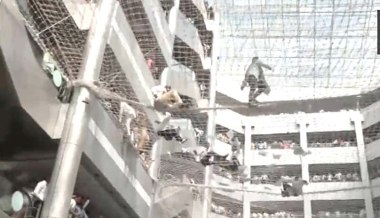 அப்போது, தலைமை செயலக கட்டிட மாடியில் இருந்து விவசாயிகள் கீழே குதித்தனர். தலைமை செயலகத்தில் வலை அமைக்கப்பட்டிருந்ததால் மாடியில் இருந்து குதித்த விவசாயிகள் அதிர்ஷ்டவசமாக வலையில் விழுந்தனர். இதனால் யாருக்கும் எந்த பாதிப்பும் ஏற்படவில்லை.