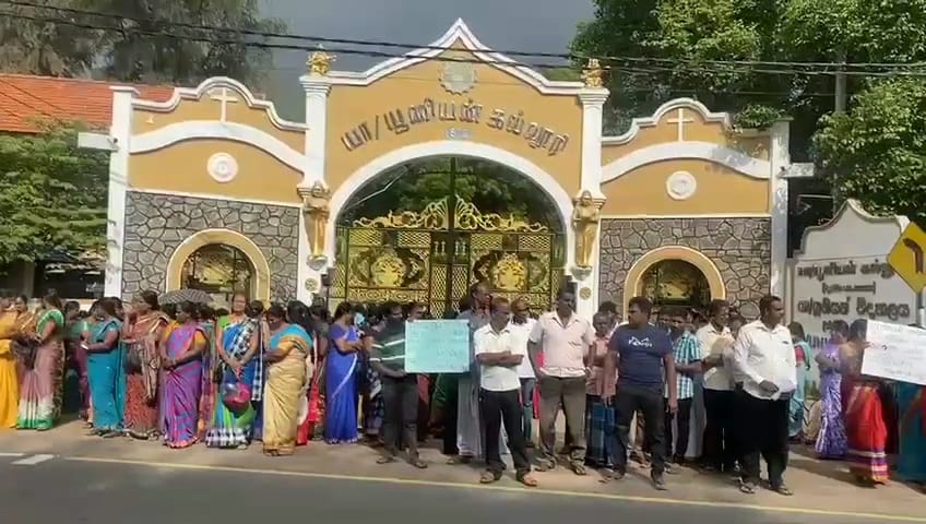 தெல்லிப்பழை யூனியன் கல்லூரி முன்பாக ஆசிரியரொருவருக்கு எதிராக ஆர்ப்பாட்டம்!! (PHOTOS)