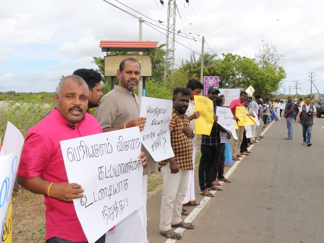 திருகோணமலை இலுப்பைக்குளம் பகுதியில் அமைக்க திட்டமிடப்பட்டுள்ள பொரலுகந்த ரஜமகா விகாரைக்கு எதிர்ப்பு தெரிவித்து இன்றைய தினம் (03) மனித சங்கிலிப் போராட்டம் ஒன்று திருகோணமலை, சாம்பல்தீவு பாலத்திற்கு அருகில் முன்னெடுக்கப்பட்டது.