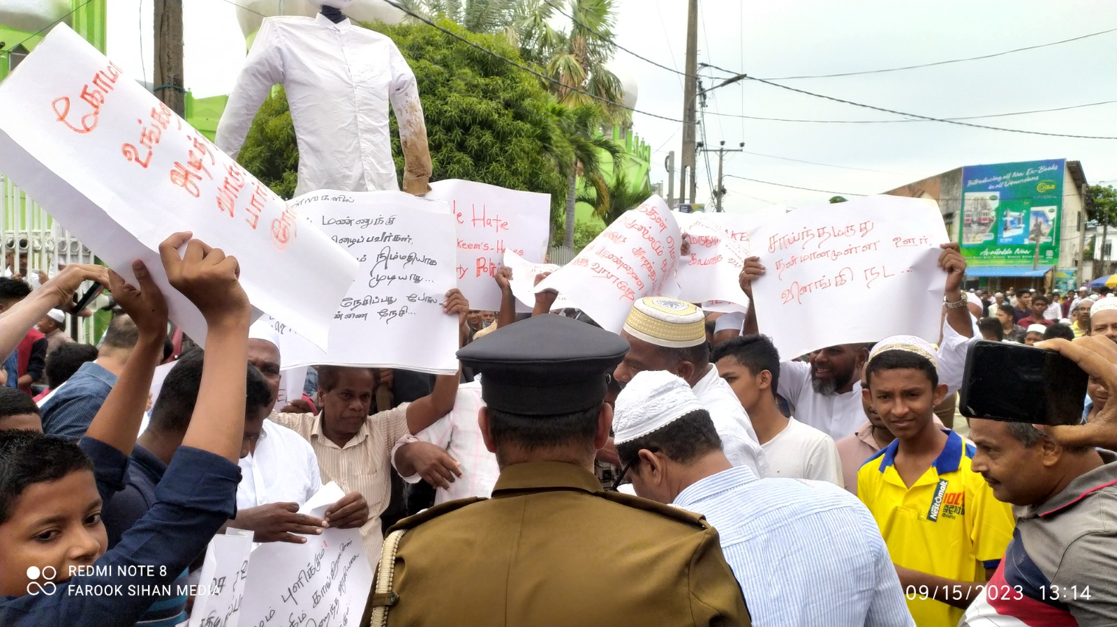 முஸ்லிம் காங்கிரஸின் தலைவர் ரவூப் ஹக்கீம் நாளை 2023.09.16 சாய்ந்தமருதில் நடைபெற இருக்கும் தலைவர் தின நிகழ்வில் கலந்து கொள்வதற்காக வருகை தருவதை கண்டித்து இன்று சாய்ந்தமருதில் மாபெரும் கண்டன எதிர்ப்பு போராட்டம் முன்னெடுப்பு இடம்பெற்றது.