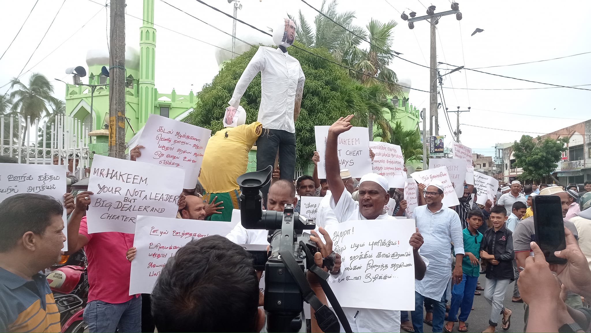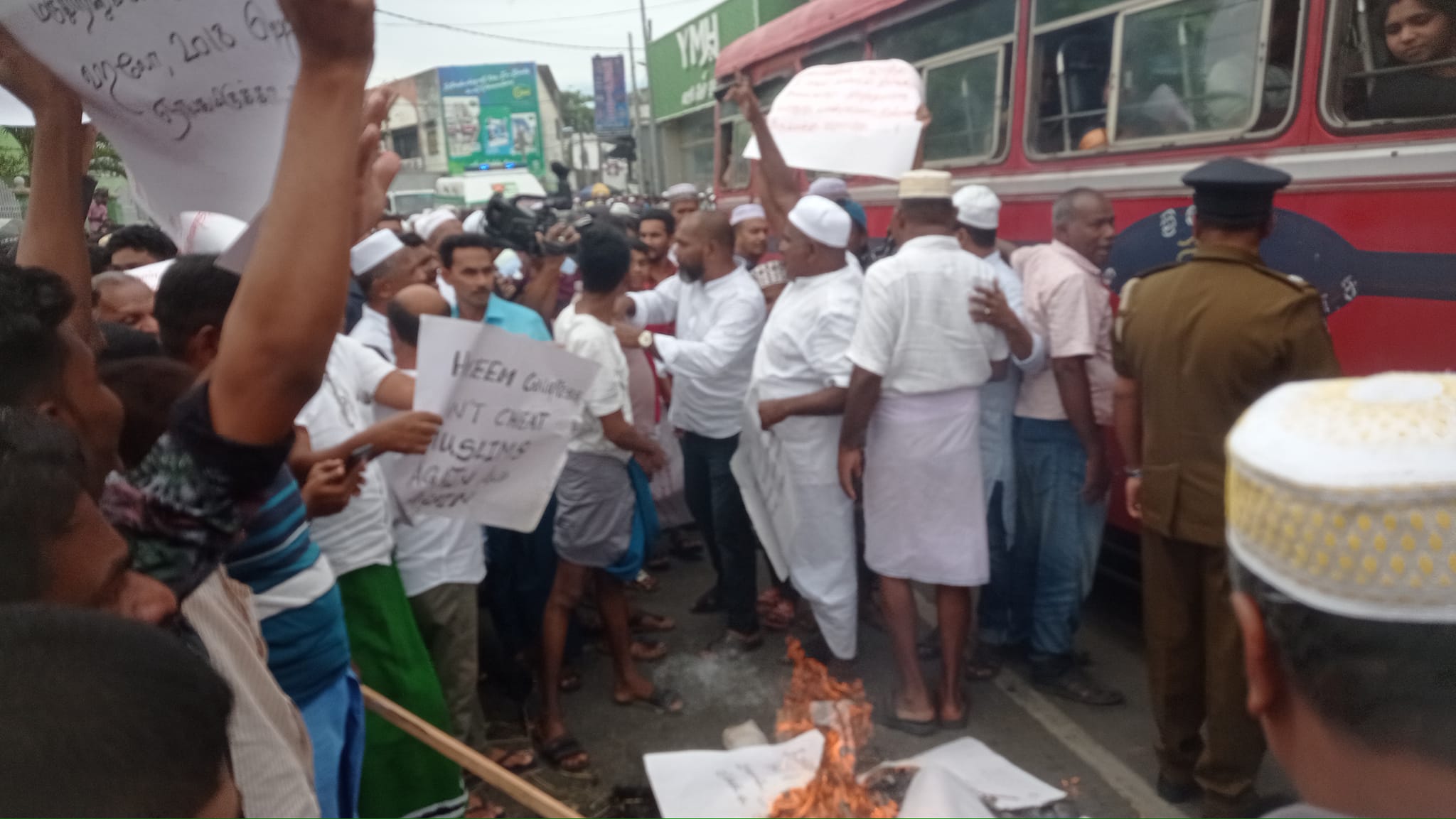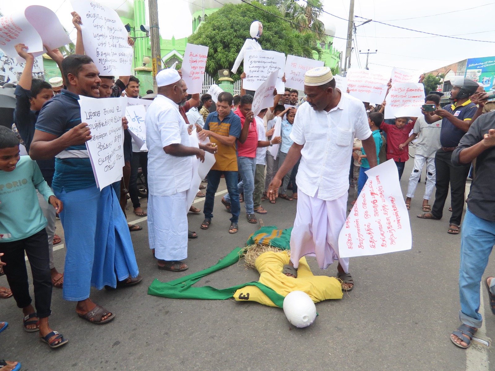 அத்துடன் ஸ்ரீலங்கா முஸ்லிம் காங்கிரஸ் தலைவர் ரவூப் ஹக்கீம், ஸ்ரீலங்கா முஸ்லிம் காங்கிரஸ் பிரதித்தலைவர் எச்.எம்.எம்.ஹரீஸ், கல்முனை மாநகர முன்னாள் முதல்வர் சிராஸ் மீராசாஹிப் ஆகியோர்களின் உருவபொம்மை எரிக்கப்பட்டது.
