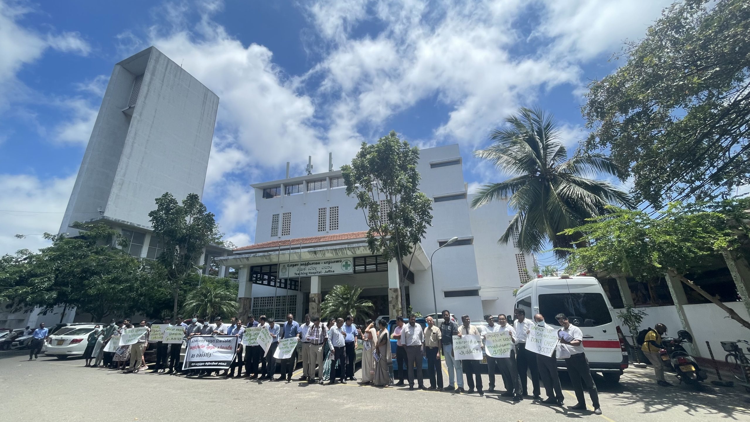 யாழ். போதனா வைத்தியசாலையில் இன்றைய தினம் வியாழக்கிழமை மதியம் 12 மணி முதல் 1 மணி வரையில் போராட்டம் நடைபெற்றது.