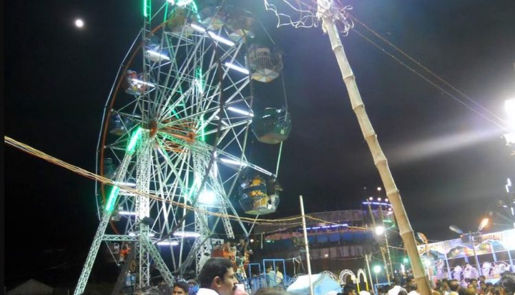 புதன்கிழமை இரவு இந்த சம்பவம் நடந்துள்ளது. சுற்றிக்கொண்டிருந்த ராட்டினம் தொழில்நுட்பக் கோளாறு காரணமாக நடுவழியில் நின்றுபோன விடியோ சமூக வலைத்தளங்களில் வைரலாகி வருகிறது.