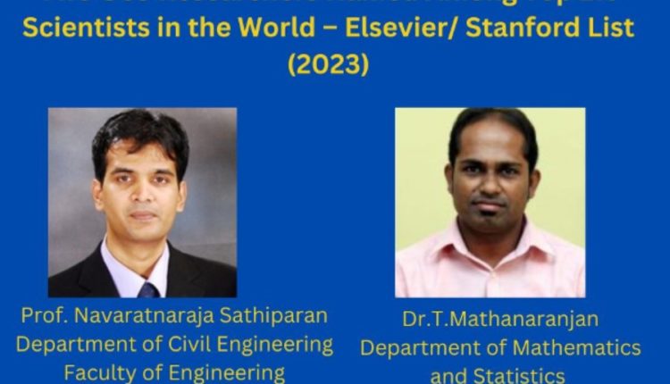 உலகின் சிறந்த விஞ்ஞானிகளின் தரவரிசையில் யாழ் பல்கலைக்கழகத்தில் இருந்து இருவர் தெரிவு