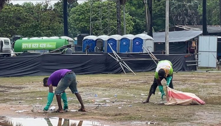 மறுநாள் , யாழ்.மாநகர சபை தூய்மை பணியாளர்கள் மைதானத்தில் வீசி செல்லப்பட்ட கழிவுகளை தமது கைகளால் அப்புறப்படுத்தி மைதானத்தை சுத்தம் செய்யும் பணியில் ஈடுபட்டனர்.