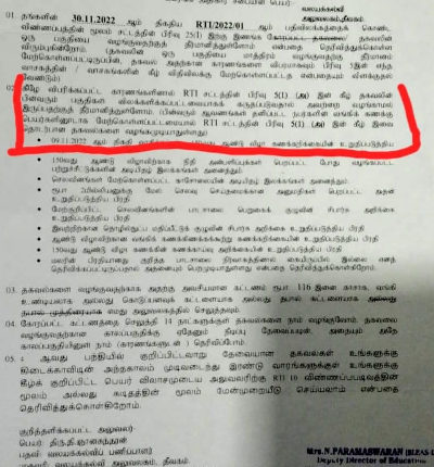 பதில் வழங்கிய தீவக கல்விவலய தகவல் வழங்கும் அலுவலர் தங்களால் கோரப்பட்ட ஆவணங்கள் தனிப்பட்ட நபர்களின் வங்கிக் கணக்கு பெயர்களினூடாக மேற்கொள்ளப்பட்டமையால் இது தொடர்பான தகவல்களை வழங்கமுடியாதுள்ளது என உறுதிப்படுத்தியது.