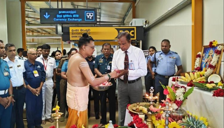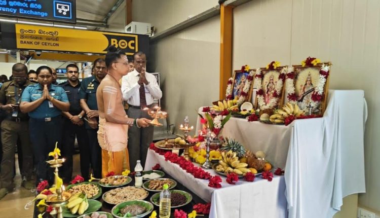 விமான நிலைய அதிகாரிகளின் ஏற்பாட்டில் இடம்பெற்ற பூஜை வழிபாட்டில் , விமான நிலையத்தில் பணியாற்றும் ஊழியர்கள் , சுங்கத்துறையினர் , விமான படையினர் உள்ளிட்டவர்கள் கலந்து கொண்டிருந்தனர்.