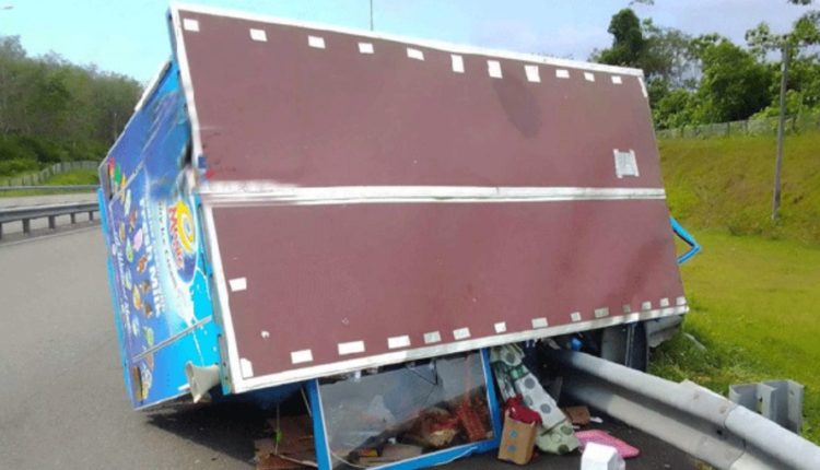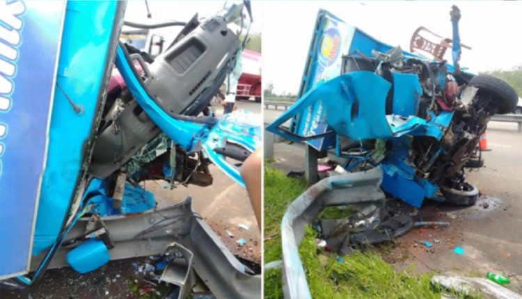 குறித்த விபத்தில் ஐஸ்கிரீம் வாகனம் வீதியின் இடது பக்கமாக இழுத்துச் செல்லப்பட்டு பாதுகாப்பு வேலியில் மோதியுள்ளது.