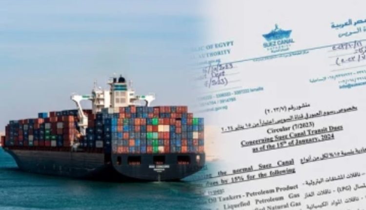இதேவேளை, சூயஸ் கால்வாய் அதிகார சபையினால் வெளியிடப்பட்டுள்ள உத்தியோகபூர்வ அறிவிப்பில், சூயஸ் கால்வாய் ஊடாக செல்லும் கப்பல்களின் கட்டணம் 5 சதவீதத்திலிருந்து 15 சதவீதமாக அதிகரிக்கப்படும் என தெரிவிக்கப்பட்டுள்ளது.