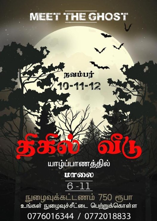 வடமாகாணத்தில் முதல் தடவையாக யாழ்ப்பணத்தில், “Artistic Event Management” ஏற்பாட்டில் திகில் வீடு ஒன்று உருவாக்கப்பட்டு வருகிறது. அந்த வீட்டினுள் சென்று திகில் அனுபவங்களை பெற்றுக்கொள்ள முடியும்.
