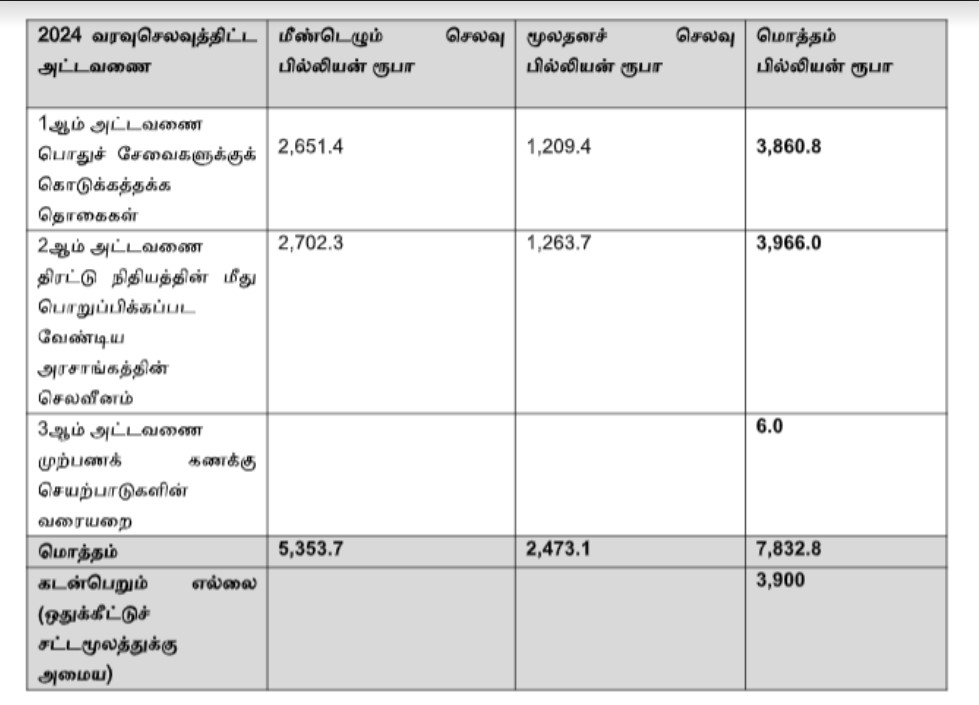 2024 ஆம் ஆண்டுக்கான நிதி ஒதுக்கீட்டுச் சட்டமூலத்தில் அரசாங்கத்தின் மொத்த செலவீனம் 7,833 மில்லியன்