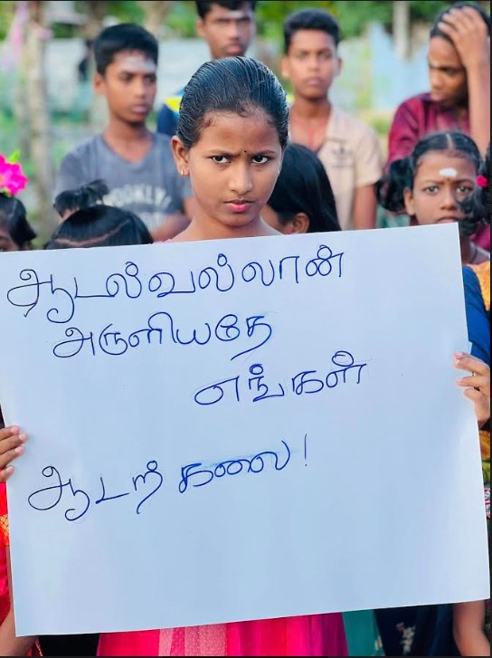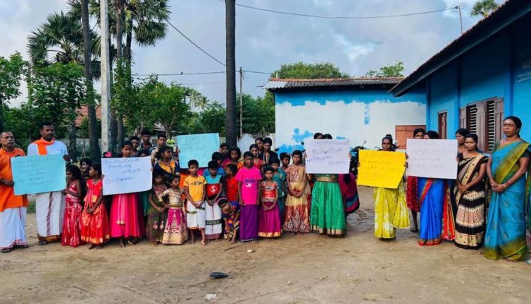 யாழ்ப்பாணம் அராலி பகுதியை சேர்ந்த பரதம் கற்கும் மாணவ, மாணவிகளும் அவர்களின் பெற்றோர்களும் இணைந்து இன்றைய தினம் செவ்வாய்க்கிழமை போராட்டத்தை முன்னெடுத்தனர்.
