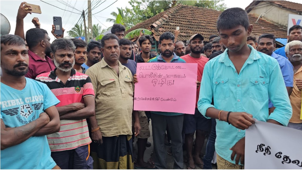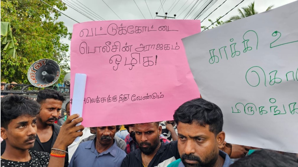 வட்டுக்கோட்டை காவல்துறையினரின் தாக்குதலுக்கு உள்ளாகி உயிரிழந்த இளைஞனுக்கு நீதி கோரி சித்தங்கேணி சந்தியில் சடலத்துடன் மக்கள் போராட்டத்தில் ஈடுபட்டு வருகின்றனர்.