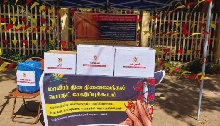 வகையில் நினைவேந்தலுக்கு தேவையான பொருட்களை சேகரிப்பதற்கான கூடம் யாழ்ப்பாண பல்கலைக்கழக மாணவர்களால் அமைக்கப்பட்டுள்ளது.