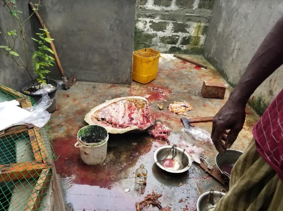 யாழ்ப்பாணம் – சாவகச்சேரிப் பொலிஸ் பிரிவிற்குட்பட்ட நாவற்குழிப் பகுதியில் உள்ள வீடொன்றில் இருந்து இன்றைய தினம் ஞாயிற்றுக்கிழமை கடலாமை இறைச்சி மீட்கப்பட்டிருப்பதுடன் உடமையில் வைத்திருந்த இருவரும் கைது செய்யப்பட்டனர்.
