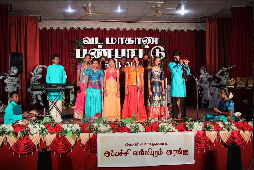 மேலும், “அமரர் கலாபூஷணம் அப்பச்சி வல்லிபுரம் அரங்கில் அரங்க நிகழ்வுகள் சிறப்புற ஆரம்பமானது. அரங்கத் திறப்புரையினை கலாபூஷணம் சிவ ஏழுமலைப்பிள்ளை நிகழ்த்தினார்.