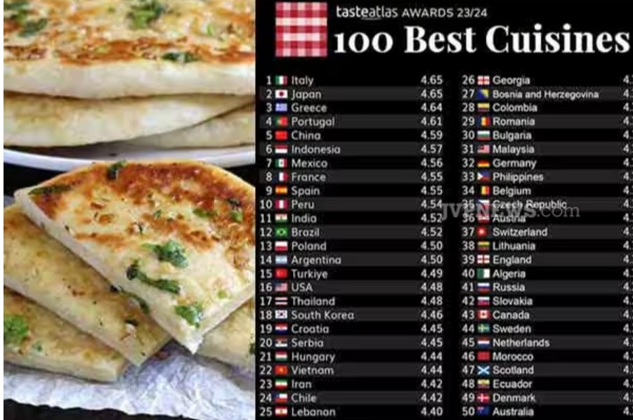 டேஸ்ட் அட்லஸ் இணையதளம் நடத்திய சுவை மிகுந்த உணவுகள் கொண்ட நாடுகள் பட்டியலில் இந்தியா 11வது இடத்தில் உள்ளது. உணவு பொருட்களில் இந்தியாவின் 4 உணவுகள் இடம்பிடித்துள்ளன.
