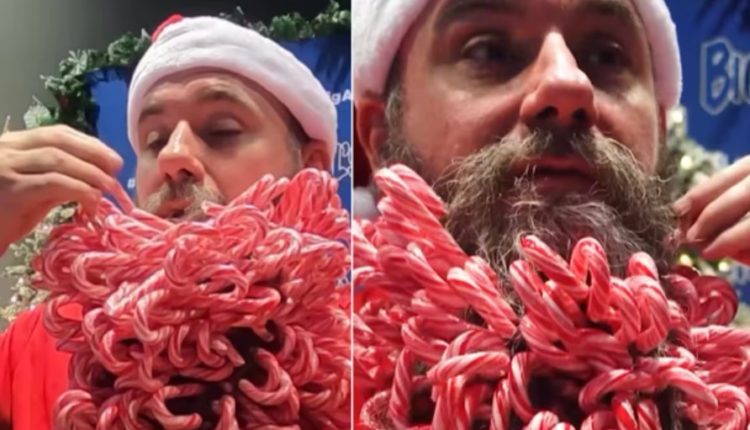 தாடியில் 187 கிறிஸ்துமஸ் மிட்டாய்களை நுழைத்து புதிய உலக சாதனை