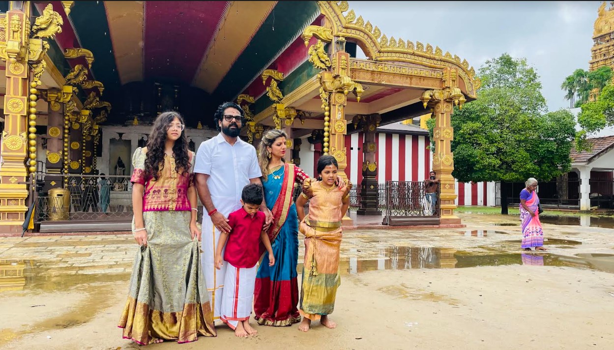 யாழ்ப்பாணத்திற்கு வருகை தந்துள்ள தென்னிந்திய நடிகை ரம்பா இன்றைய தினம் செவ்வாய்க்கிழமை காலை நல்லூர் ஆலயத்திற்கு தனது குடும்பத்துடன் சென்று வழிப்பாட்டில் ஈடுபட்டார்.