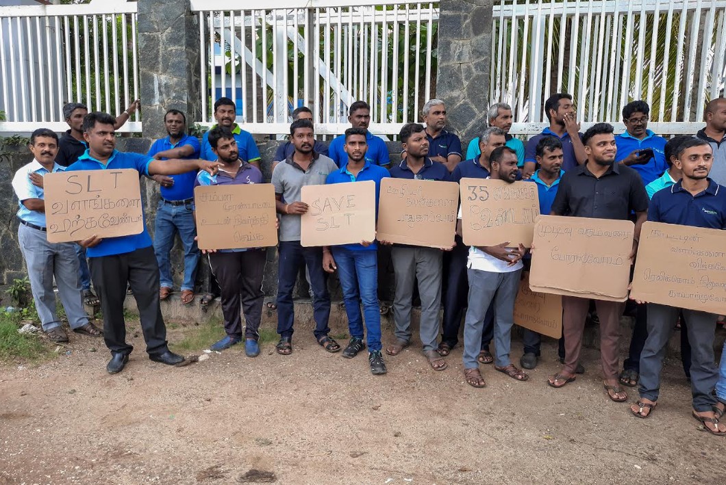 ஶ்ரீலங்கா ரெலிகொம் (SLT) நிறுவனத்தை தனியார் மயமாக்குவதற்கு எதிர்ப்புத் தெரிவித்து ஸ்ரீலங்கா ரெலிகொம் நிறுவன ஊழியர்கள் யாழ்ப்பாணத்தில் போராட்டத்தில் ஈடுபட்டனர்.