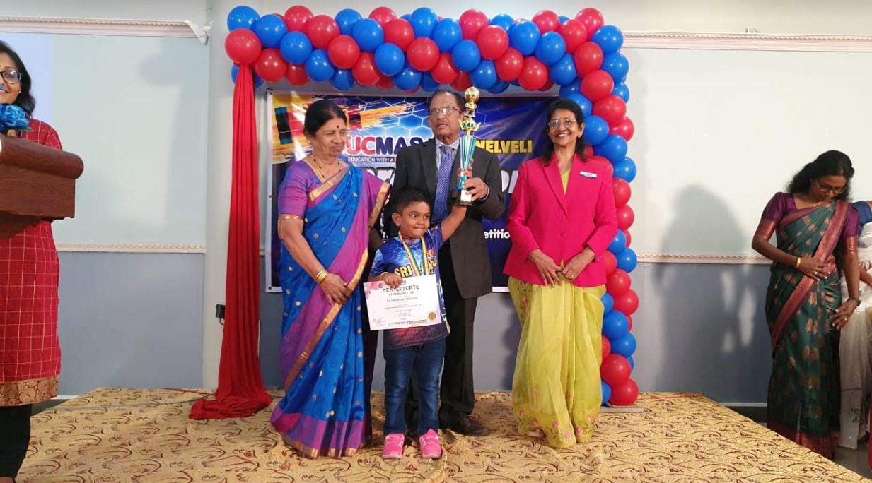 UCMAS இயக்குநர் றாதை பாஸ்கரன் தலைமையில் இடம்பெற்ற இந்த நிகழ்வில் யாழ் பல்கலைக்கழக வாழ்நாள் பேராசிரியர் பொ.பாலசுந்தரம்பிள்ளை பிரதம விருந்தினராக கலந்து கொண்டு சிறப்பித்தார்.