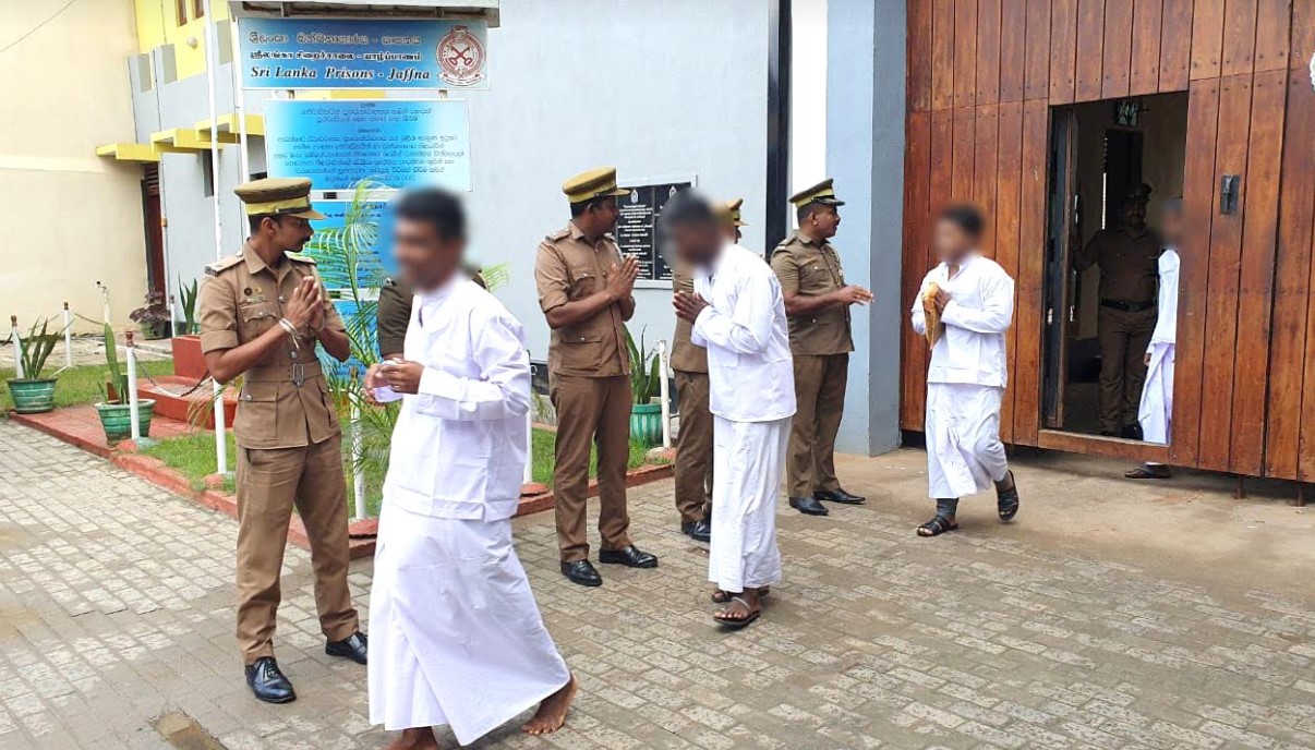 யாழ்ப்பாணம் சிறைச்சாலை அத்தியட்சகர் கே.பி.ஏ. உதயகுமார தலைமையிலான சிறைச்சாலை உத்தியோகத்தர்கள் கைதிகளை சிறைச்சாலையில் இருந்து இன்று காலை 9 மணிக்கு சம்பிரதாயபூர்வமாக வழியனுப்பி வைத்தனர்.