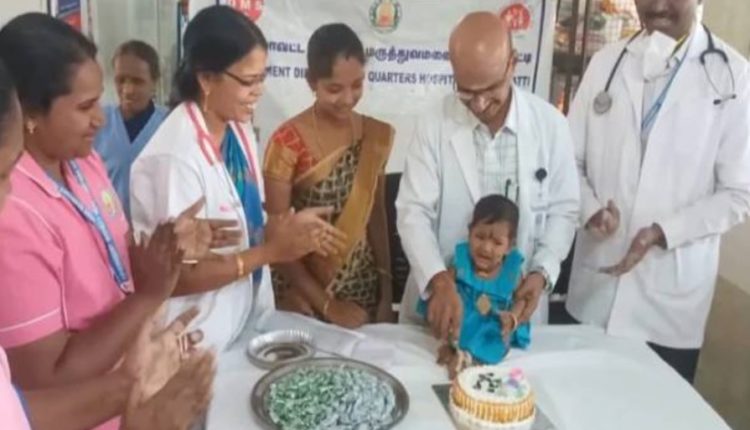 இதன் காரணமாக இந்த பெண் குழந்தைஆறரை கிலோவுக்கு கூடி எந்தவொரு குறைபாடும் இல்லாத குழந்தையாக மாறியது. தற்போது, குழந்தையின் பிறந்தநாளை கொண்டாடும் வகையில் மருத்துவமனையில் சிறப்பு ஏற்பாடு செய்யப்பட்டு கேக் வெட்டி இனிப்புகள் வழங்கப்பட்டது. இச்சம்பவம் நெகிழ்ச்சியை ஏற்படுத்தியுள்ளது.