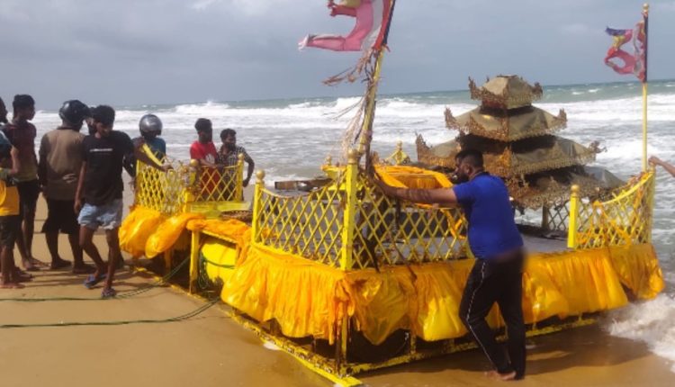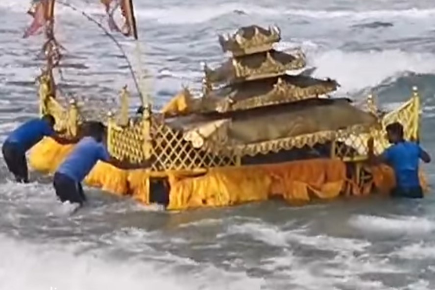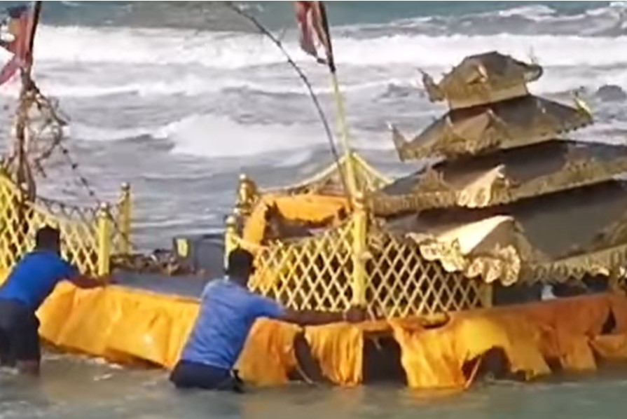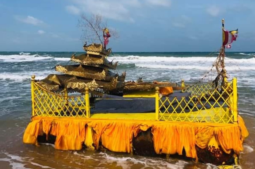 குறித்த தெப்பம் பௌத்த கொடிகளுடன் கரையொதுங்கியுள்ளதாக கூறப்படும் நிலையில் அத் தெப்பம் மிகவும் அலங்கரிக்கபப்ட்ட நிலையில் கரையுதுங்கியுள்ளது.