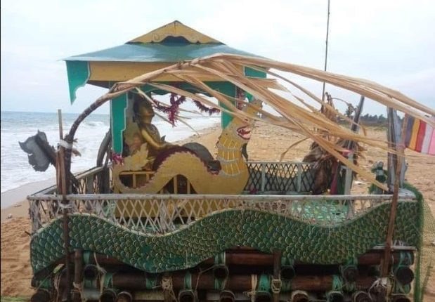 யாழ்.குடாரப்பில் புத்தபெருமான் வீற்றிருக்கும் மிதவை ஒன்று கரையொதுங்கியுள்ளது