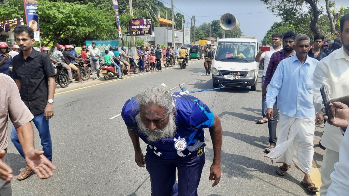 இதன்போது 1550 கிலோகிராம் எடை கொண்ட வாகனத்தை 19 நிமிடம் 45 செக்கன்களில் 1500 மீற்றர் தூரம் தனது தலைமுடியின் உதவியை மாத்திரம் பயன்படுத்தி இழுத்து உலக சாதனையைப் பதிவு செய்துள்ளார்.