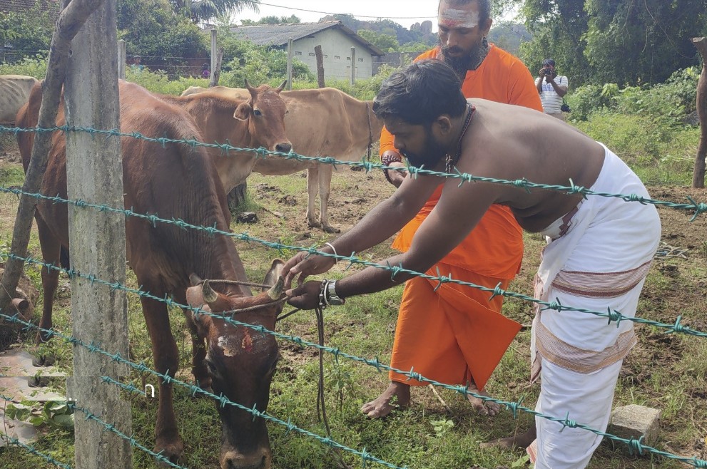 திருகோணமலை மாவட்ட காந்தி சேவை சங்கத்தினால் குறித்த மாட்டுப்பொங்கல் கன்னியா பகுதியிலுள்ள பட்டியொன்றில் கொண்டாடப்பட்டது.