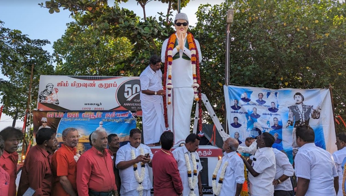 யாழ்ப்பாணம் பாசையூர் பகுதியில் நேற்று மாலை அப்பகுதி மக்களும் இந்தியாவிலிருந்து வருகை தந்த எம்.ஜி.ஆர் ரசிகர் மன்ற உறுப்பினர்களும் இணைந்து கேக் வெட்டி எம்.ஜி.ஆரினுடைய பிறந்த தினத்தை கொண்டாடினார்கள்.